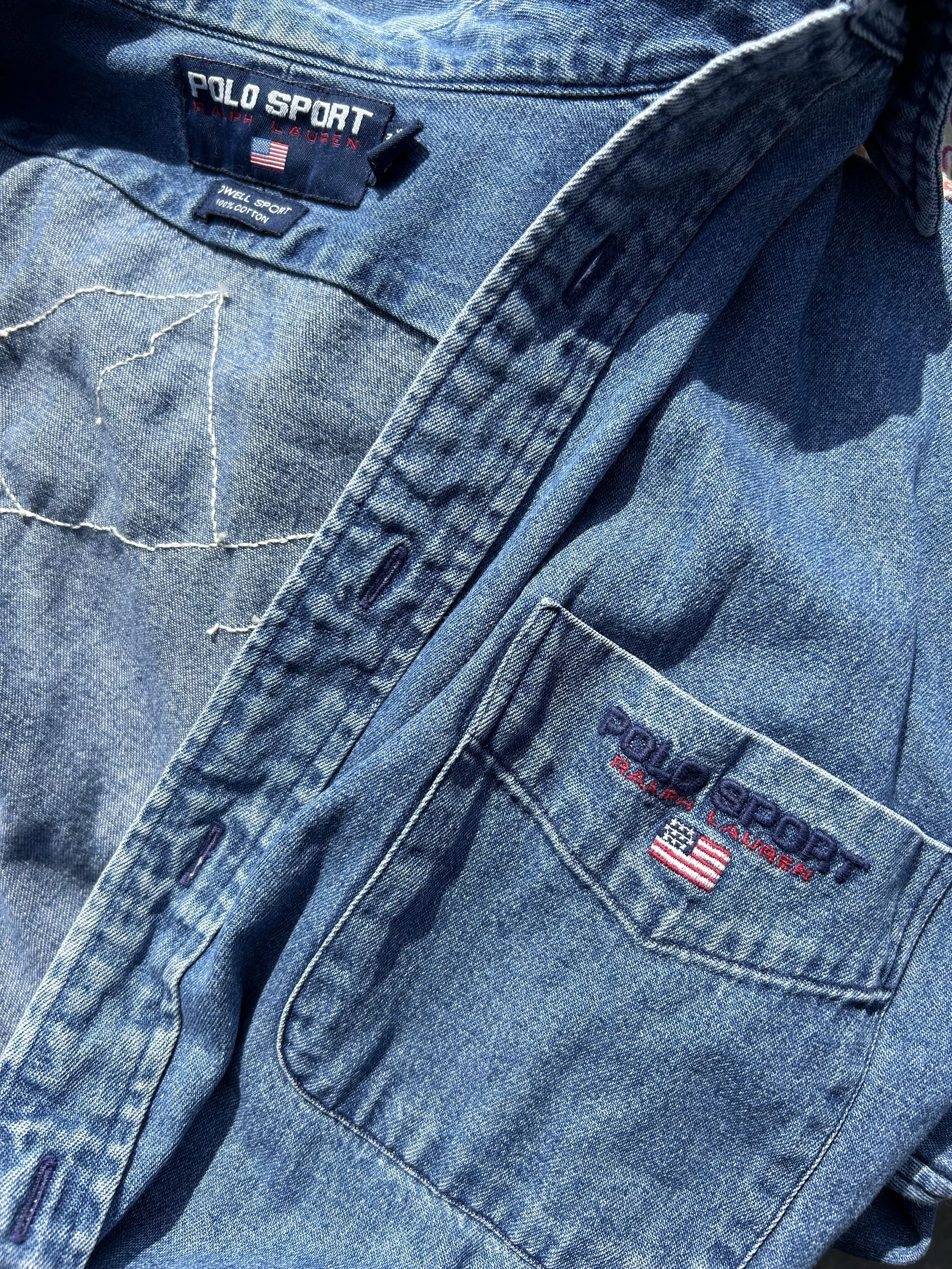 Cette veste Sezane de seconde main taille S est customisée avec un patchwork. C’est une pièce unique.